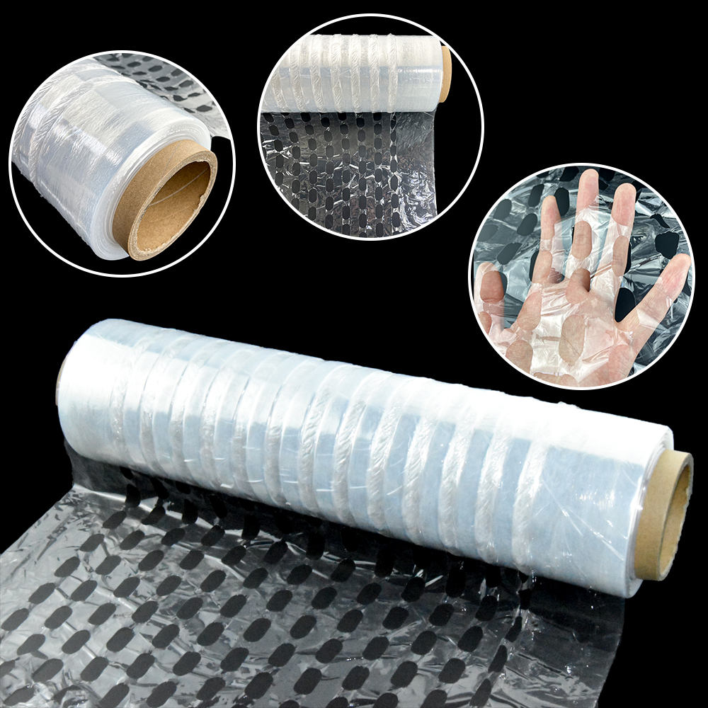 BFolia elastică respirabilă, numită și folie elastică cu orificiu, este înfășurată în jurul pachetelor și articolelor ambalate pentru a le fixa pe paleți.Are orificii sau orificii de ventilație, astfel încât aerul să poată circula în jurul produsului pentru a ajuta la prevenirea condensului care poate deteriora sau strica conținutul.Poate fi folosit pentru a împacheta lemn, produse pentru amenajare a teritoriului, alimente și băuturi reci, produse și alte articole care necesită refrigerare sau degajă umezeală.