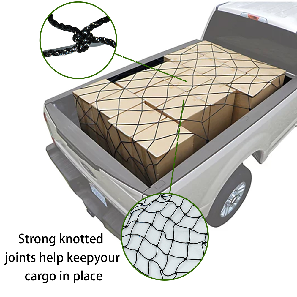 Plasa cu noduri negre sunt fabricate 100% din polietilena virgina/nailon, care are stabilizator anti-UV si antioxidant.Perfect pentru o plasă de exterior, deoarece nu se va deteriora și nu își va pierde rezistența atunci când este expus la soare și la condiții meteorologice nefavorabile.Va rămâne puternică mulți ani.Această plasă nu se rupe ușor,  rezista rezistențelor mari la rupere și rezistențelor mari la tracțiune.